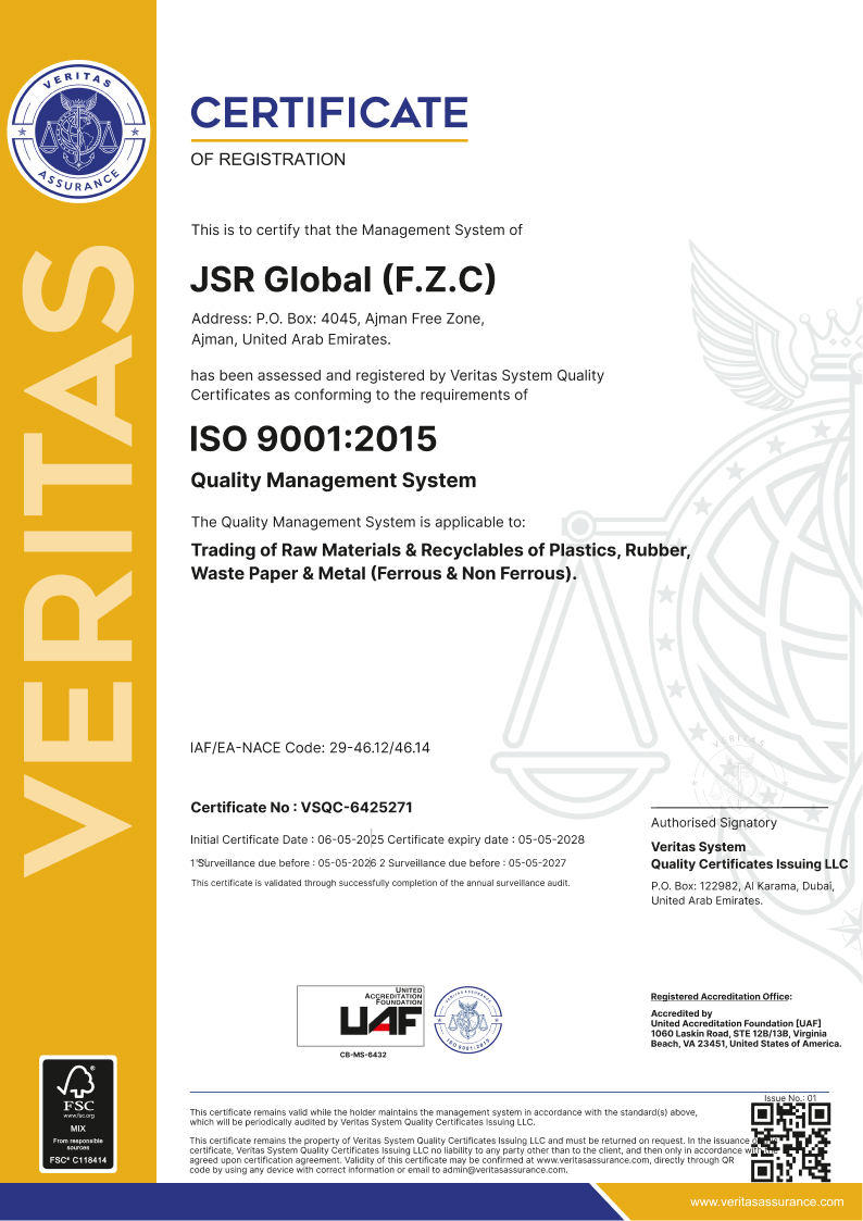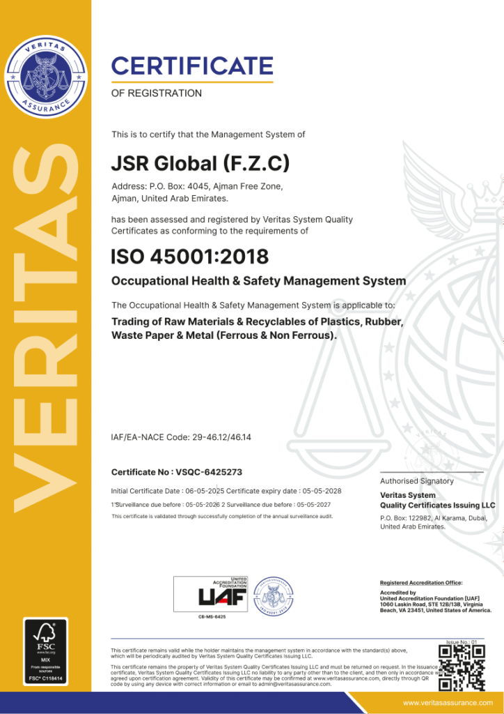 JSR is a world-renowned supplier and trader specializing in recyclable, non-prime, off-grade, regrind, and reprocessed plastic raw materials, Rubber scrap, metal scrap & waste paper etc. We empower industries with sustainable and cost-effective solutions for high-quality raw materials sourcing worldwide.